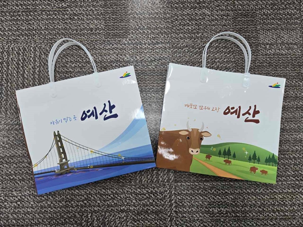 쇼핑백에는 예산한우 로고와 상징 이미지가 삽입돼 소비자가 제품을 구매할 때마다 자연스럽게 홍보 효과가 나타나도록 디자인됐으며 이를 통해 군은 예산한우의 브랜드 노출을 확대하고 지역 축산물에 대한 신뢰도 향상을 기대하고 있다.