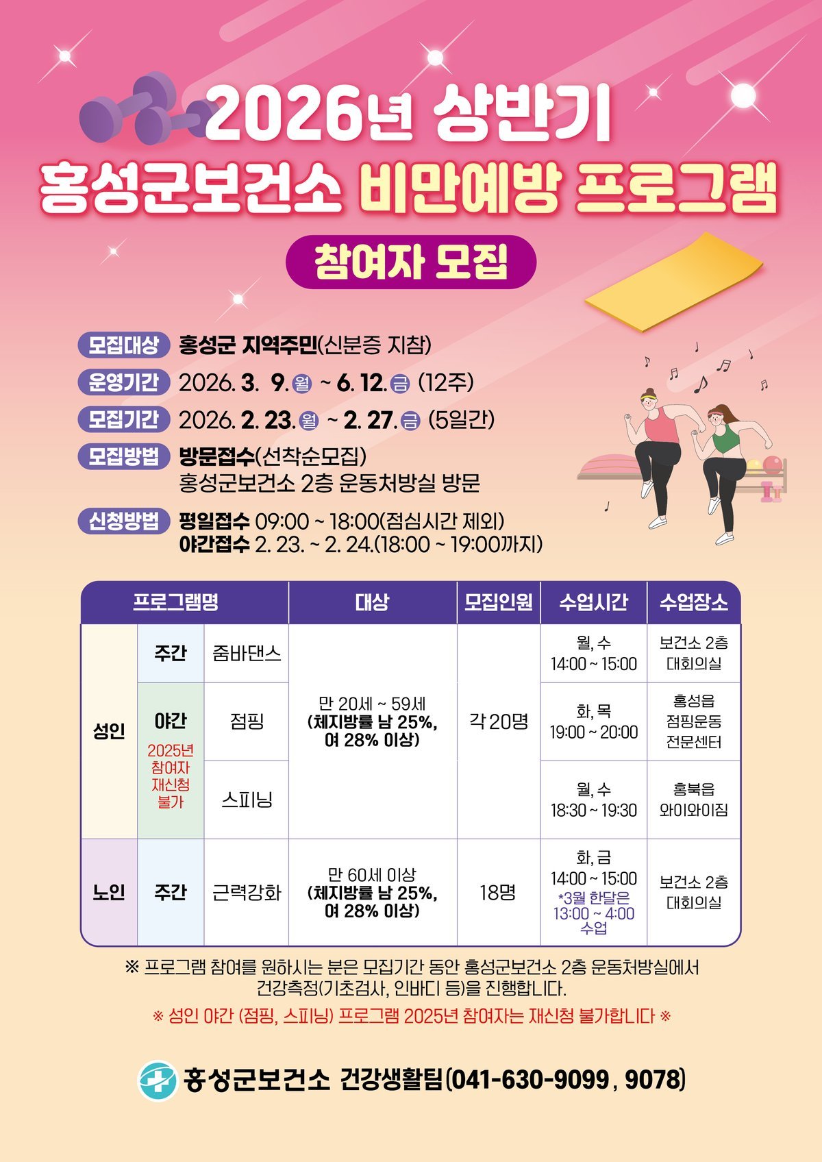[Ytv영상스토리] 홍성군보건소가 오는 23일부터 27일까지 지역 주민의 체계적인 체중 관리와 건강 습관 형성을 돕는 ‘상반기 비만예방 프로그램’참여자를 모집한다.