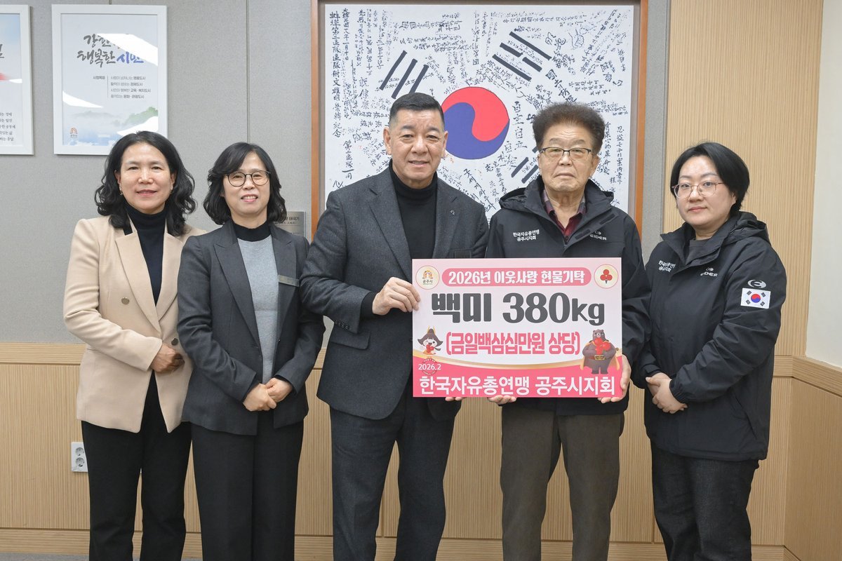 [Ytv영상스토리] 공주시는 한국자유총연맹 공주시지회가 제14대 회장 취임을 기념해 백미 380kg을 기탁하며 따뜻한 나눔을 실천했다고 밝혔다.