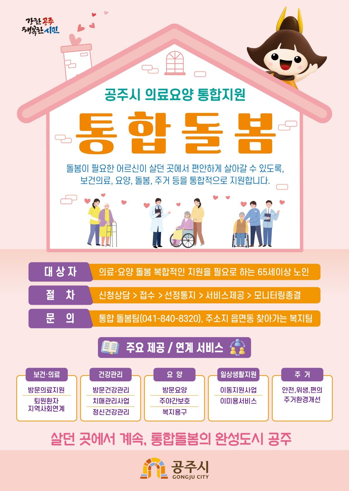 [Ytv영상스토리] 공주시는 3월 27일부터 시행되는 ‘의료·요양 등 지역 돌봄의 통합 지원에 관한 법률’에 맞춰 개인별 맞춤 서비스를 제공하는 ‘지역 돌봄 통합 지원체계’운영을 본격화한다고 밝혔다.