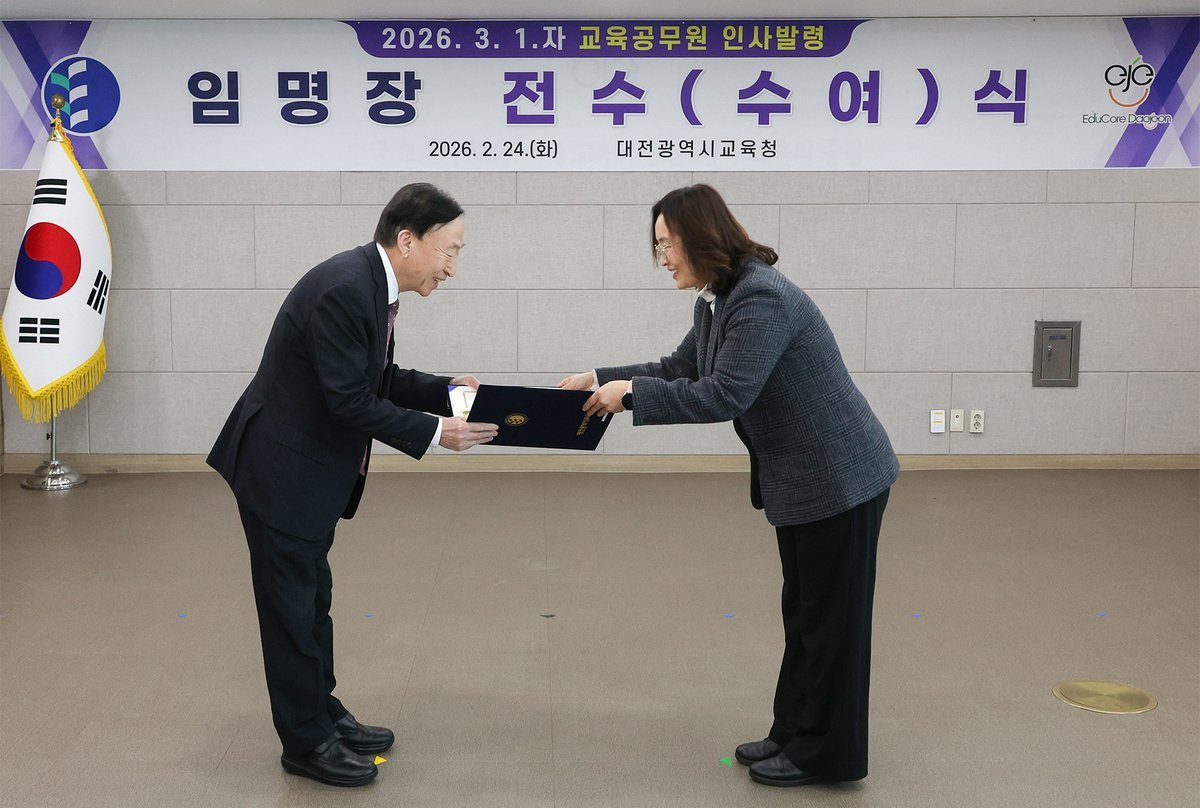 [Ytv영상스토리] 대전시교육청은 2월 24일에 2026년 3월 1일자 인사발령에 따른 ‘2026학년도 늘봄지원실장 임명장 수여식’을 개최했다고 밝혔다.