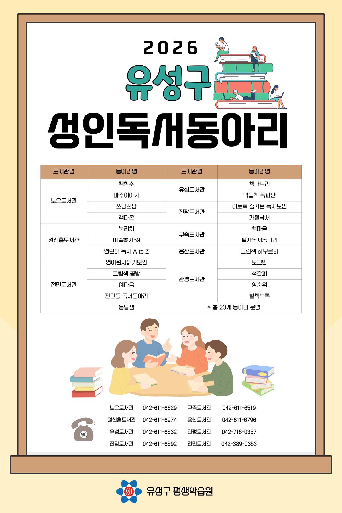 [Ytv영상스토리] 대전 유성구는 관내 8개 공공도서관에서 지역 주민의 독서 공동체 문화 확산을 위해 '2026년 성인 독서동아리'를 연중 운영한다고 25일 밝혔다.