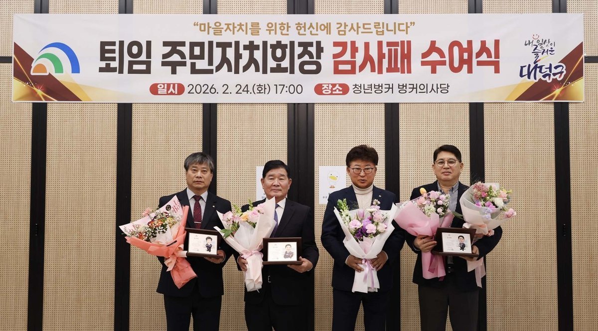 대덕구 관계자는 "주민자치 현장에서 묵묵히 헌신해 주신 세 분 회장님의 열정과 봉사가 지역 공동체를 더욱 단단하게 만들었다"며 "그동안의 노고에 깊이 감사드리며 앞으로도 지역 발전을 위한 든든한 조언자로 함께해 주시길 바란다"고 말했다.