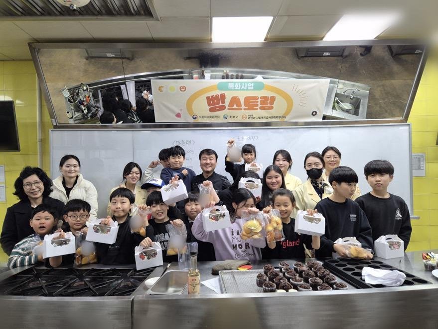 특히 배인호 센터장이 수업에 직접 참여해 아이들과 함께 반죽을 짜고 완성된 머핀을 꾸미는 활동을 지도하며 현장의 분위기를 더욱 활기차게 이끌었다.