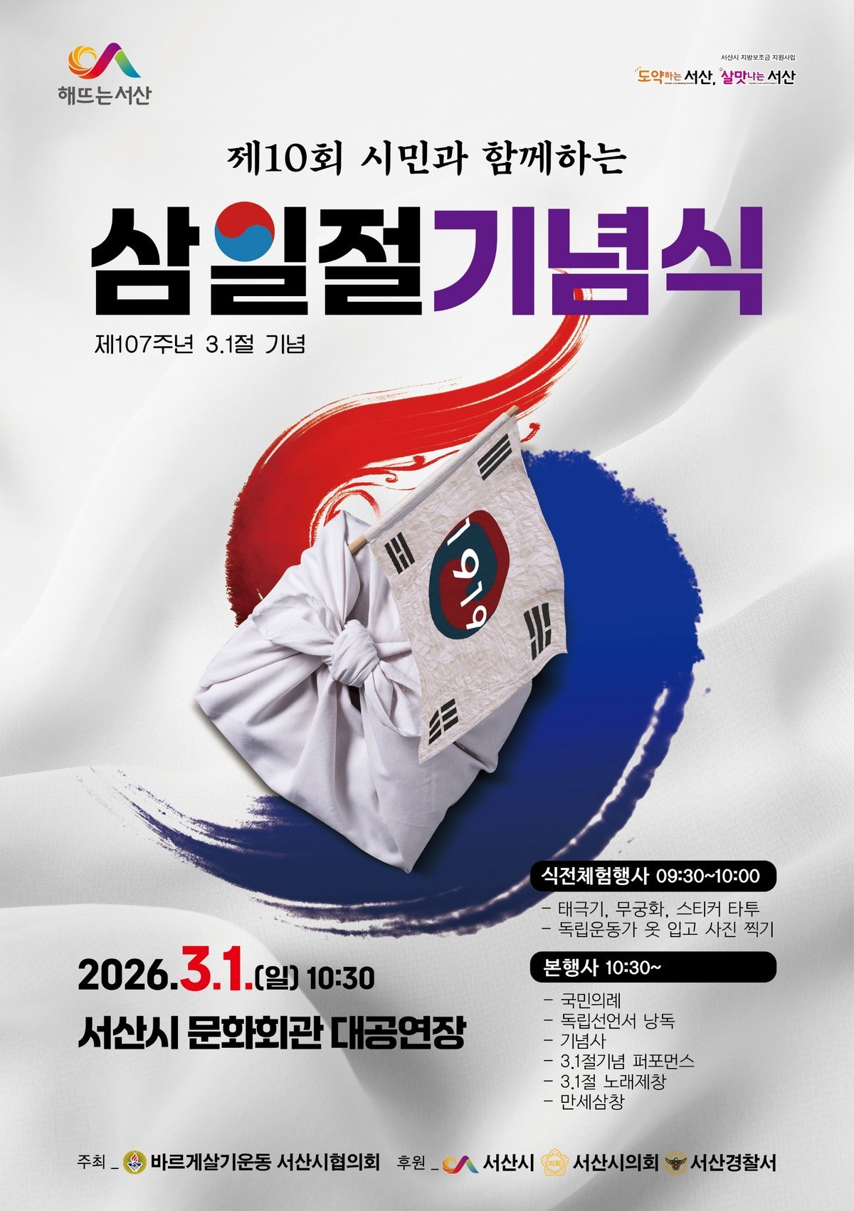바르게살기운동 서산시협의회가 주최하며 1919년 3월 1일 독립의 함성을 되새기고 시민의 애국심을 고취하기 위해 진행된다.