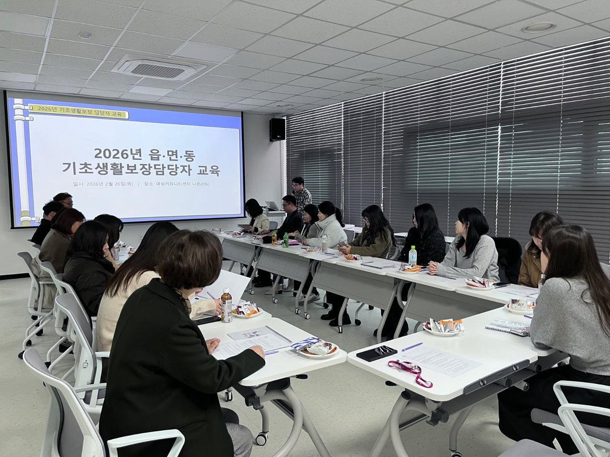 이번 교육은 읍, 면, 동 기초생활보장 담당자를 대상으로 기초생활보장 전반에 대한 이해를 높이고 2026년 개정, 변경된 제도 및 시책을 안내함으로써 실무 역량을 강화하고 시민에게 신뢰받는 행정서비스를 제공하기 위해 마련됐다.