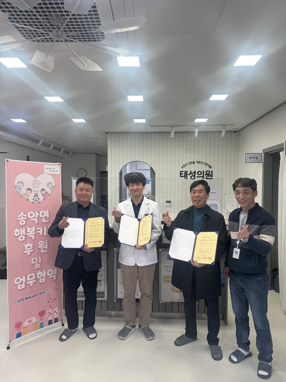 [Ytv영상스토리] 아산시 송악면 행복키움추진단은 26일 송악면 소재 태성의원과 지역 내 의료취약계층 지원을 위한 업무협약을 체결했다.