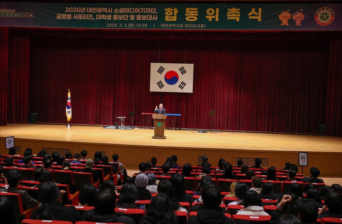 [Ytv영상스토리] 대전시는 3일 오후 3시 시청 대강당에서 ‘2026년 소셜미디어 기자단, 글로벌 서포터즈, 대학생 홍보단 및 홍보대사 합동 위촉식’을 개최했다.