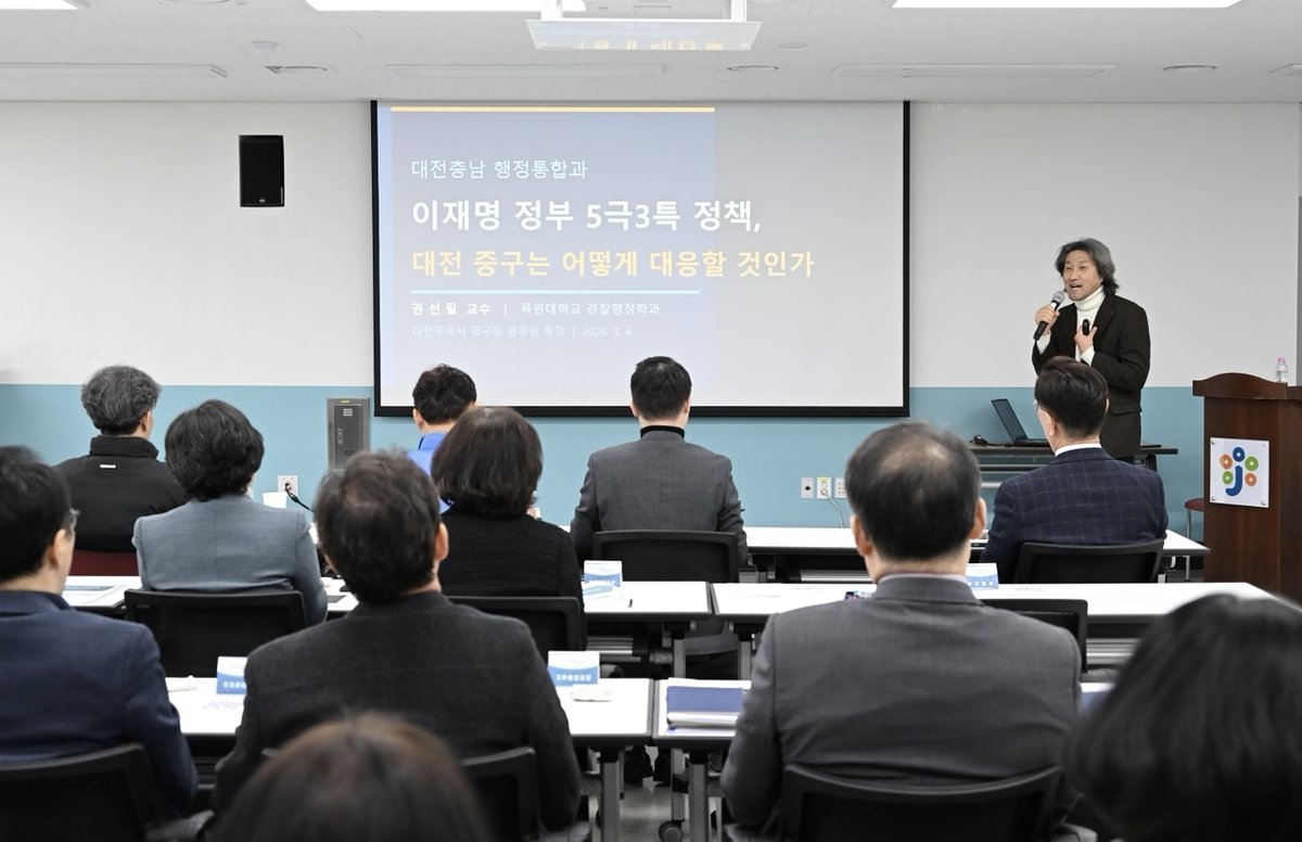 이번 교육은 급변하는 국가 정책 기조와 대전․충남 행정통합 논의 속에서 조직의 핵심 간부들이 정책 변화를 선제적으로 이해하고, 중구만의 차별화된 대응 역량을 강화하기 위해 마련됐다.
