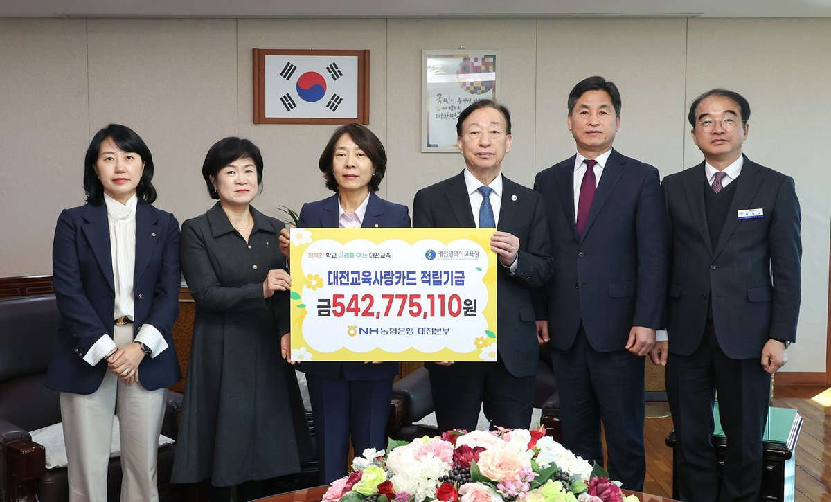 [Ytv영상스토리] 대전시교육청은 지난해 각급 학교와 산하기관 및 교직원이 대전교육사랑카드를 사용하여 모은 적립금 5억 4,200만 원을 3월 4일 NH농협은행 대전본부로부터 전달받았다고 밝혔다.