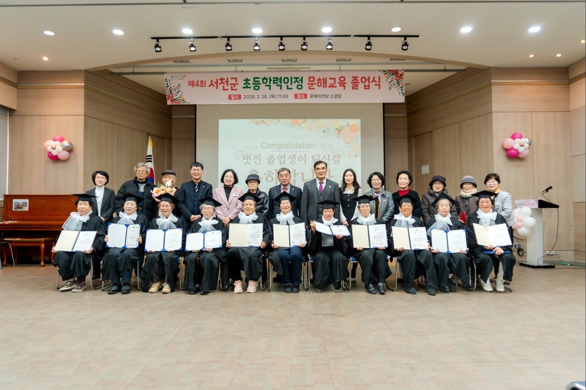 [Ytv영상스토리] 서천군은 지난 26일 서천문예의전당에서 졸업생과 가족, 문해교사 등 50여명이 참석한 가운데 ‘제4회 초등학력인정 문해교육 졸업식’을 개최했다.