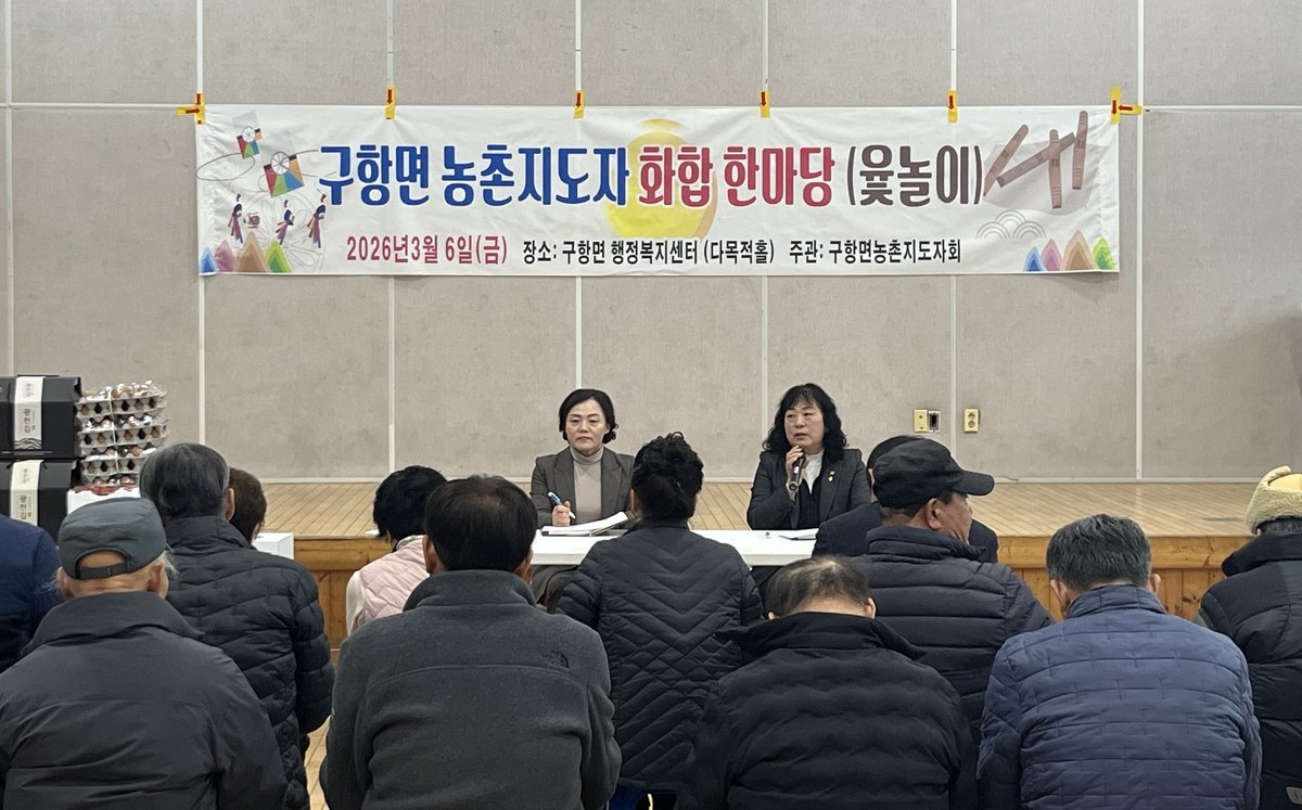 배미자 구항면장은 “농촌지도자회가 지역 농업 발전을 위해 항상 앞장서 주고 있어 감사드린다”며 “이번 화합 한마당이 회원 간 유대를 더욱 돈독히 하고 올 한해 그리고 구항면 농업의 밝은 미래를 함께 그려가는 계기가 되길 바란다”고 말했다.