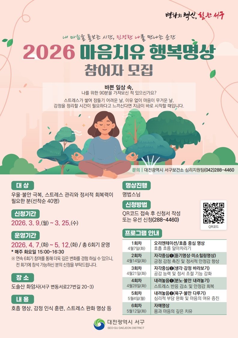 대전 서구 마음치유 행복명상 프로그램 홍보물 대전서구 제공