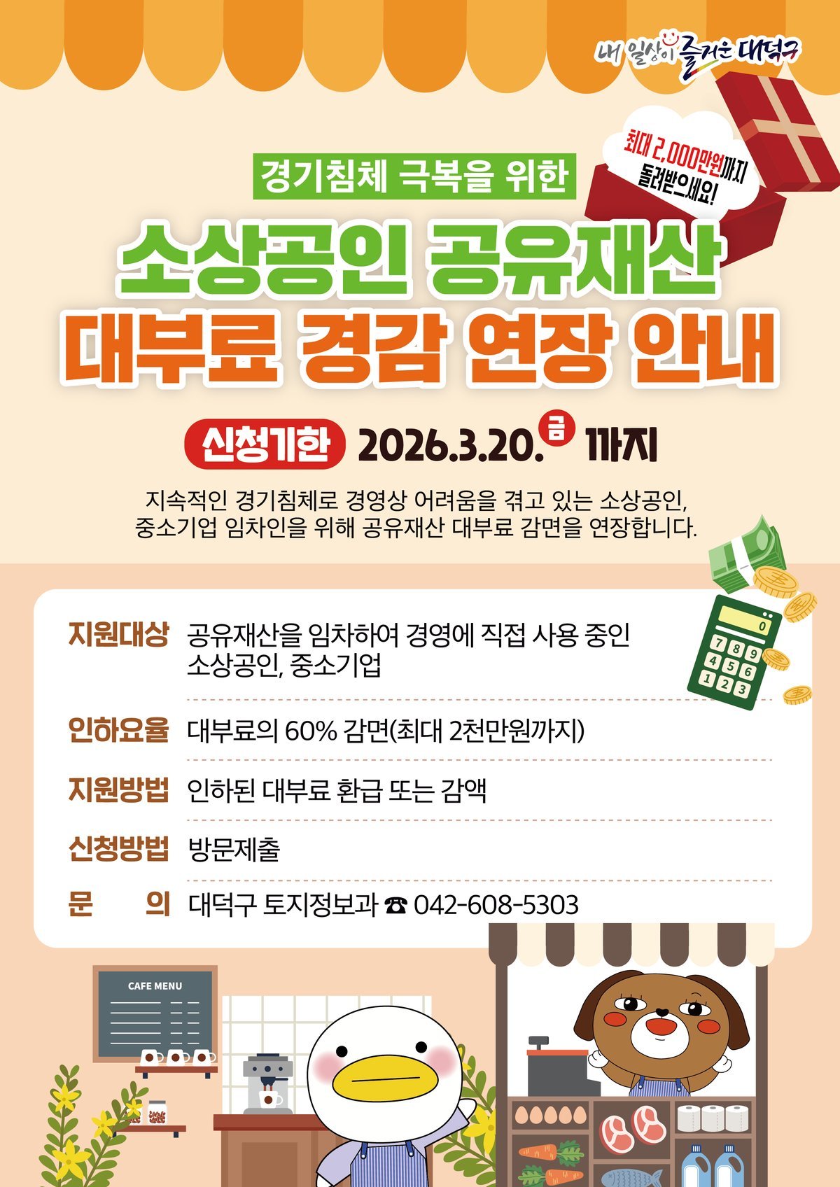 감면 대상은 2026년 대부료 부과분이며 업체당 최대 2000만원까지 감면된다.