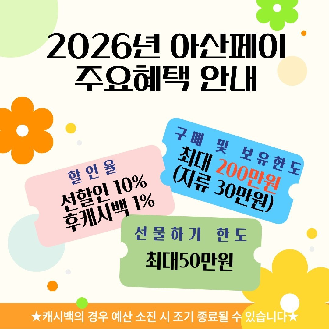 아산페이는 모바일 카드 지류 방식으로 운영되며 개인 구매 한도는 월 200만원이다.