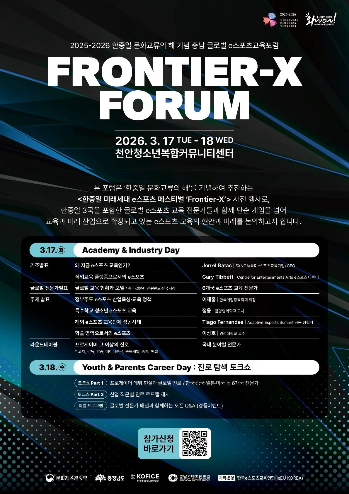 김곡미 진흥원장은 "이번 포럼은 충남 최초의 이스포츠 글로벌 포럼으로 세계 각국의 우수한 교육 사례와 전문가 네트워크가 충남의 청소년과 지역 이스포츠 생태계에 직접 닿는 의미 있는 자리가 될 것"이라며 "앞으로도 충남이 이스포츠 산업을 선도하고 충남의 인재들이 산업 전반에서 역량을 펼칠 수 있도록 지속적으로 지원해 나가겠다"라고 말했다.