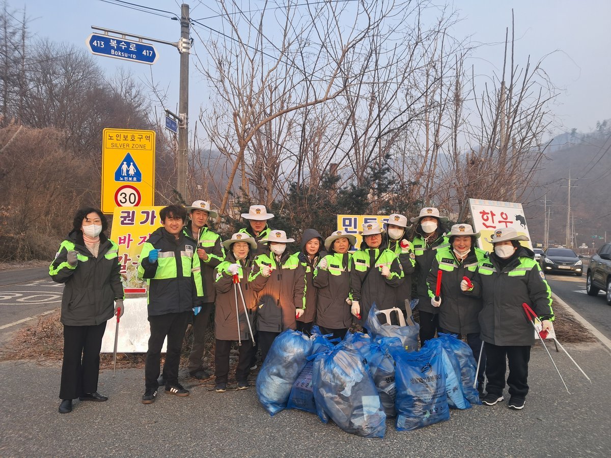 참여자들은 복수면 하천변과 주요 도로변 일대를 중심으로 겨우내 쌓인 쓰레기와 각종 부유물, 영농 폐기물 등을 수거하며 대대적인 정화 활동을 펼쳤고 농경지와 인접한 구간과 주민 통행이 잦은 도로를 집중적으로 정비했다.