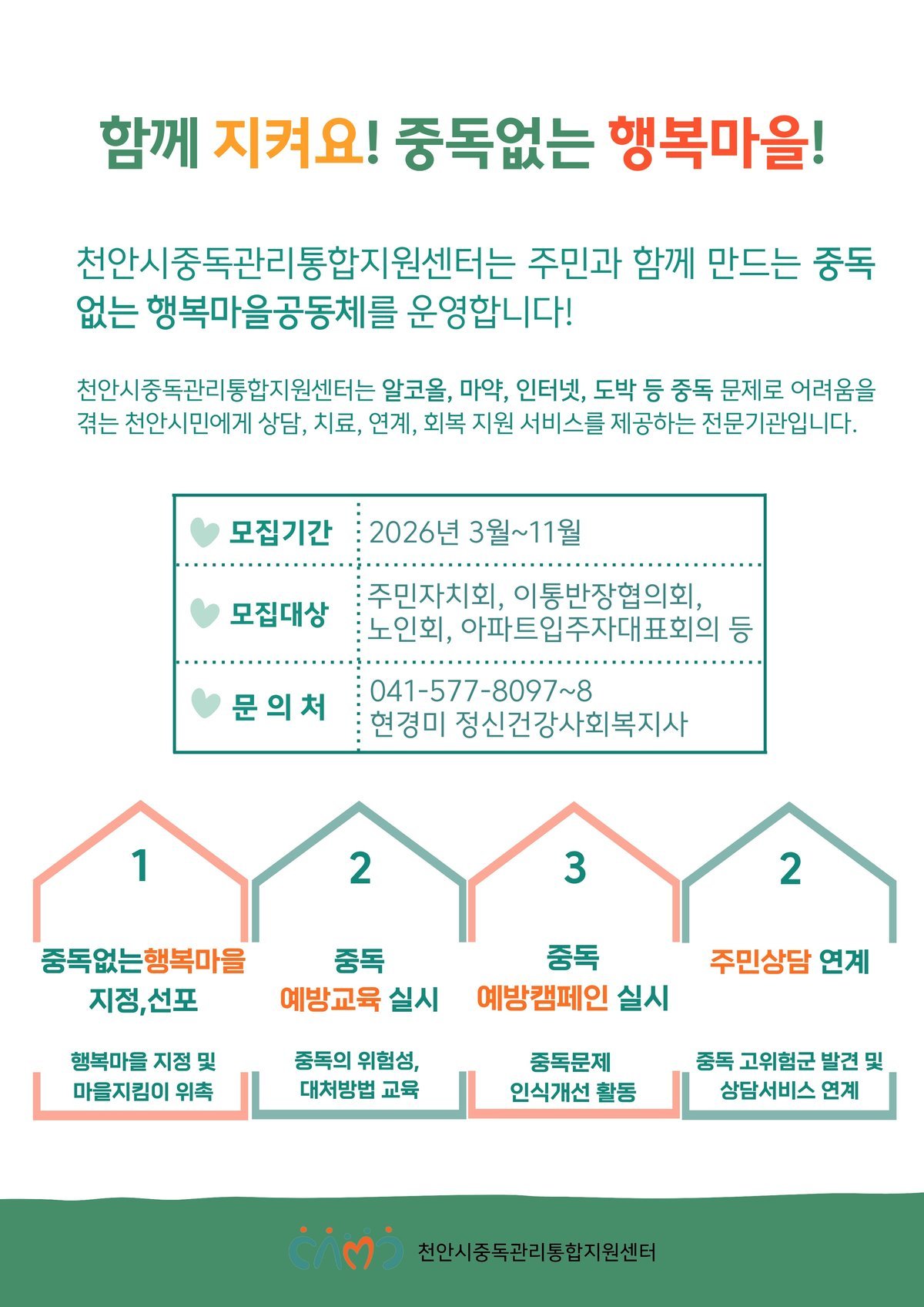 천안시, ‘중독없는 행복마을’ 확대 추진… 중독 안전망 구축