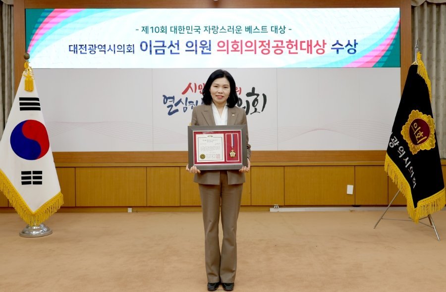 [Ytv영상스토리] 대전광역시의회 이금선 교육위원장이 교육 분야 의정활동과 지역사회 발전을 위한 노력 등을 인정받아 '2026년 제10회 대한민국 자랑스러운 베스트대상 시상식'에서 '의회의정공헌대상'을 수상했다.