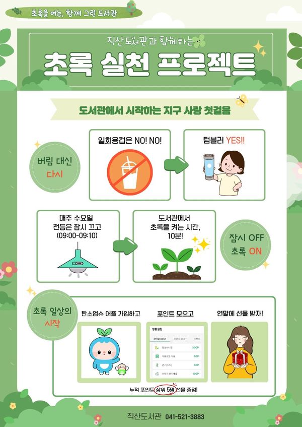 천안시 직산도서관, 생활 속 탄소 저감 ‘초록 실천 프로젝트’ 운영