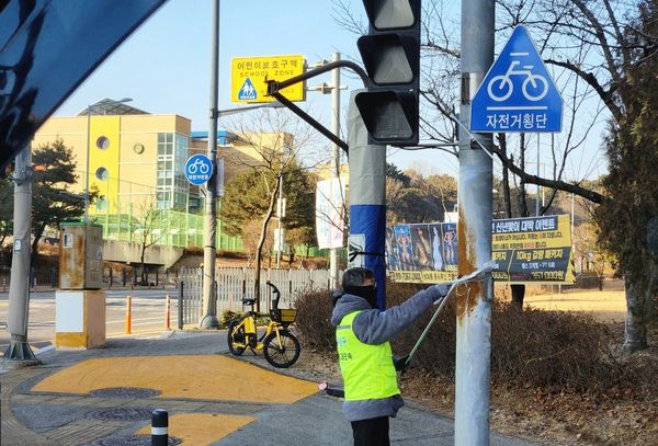 유성구, 새 학기 맞아 학교 주변 불법광고물 집중 정비 관내 42개 초등학교 주변…어린이보호구역 보행 안전 강화 (대전유성구 제공)