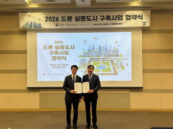 실증사업은 V TOL 드론을 활용한 GeoAI 도시 변화 탐지 소형 드론을 활용한 지하시설물 실시간 측량 등 두 가지 과제로 구성됐으며 이를 통해 디지털 트윈 및 인공지능 기반의 고도화된 도시관리 서비스를 선보일 계획이다.