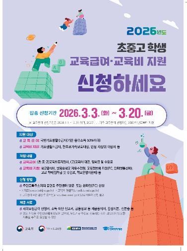 [Ytv영상스토리] 아산시는 저소득 가구 학생의 교육기회 보장을 위해 2026년 교육급여 및 초 중 고 교육비 지원사업 집중 신청기간을 3월 3일부터 3월 20일까지 운영한다.