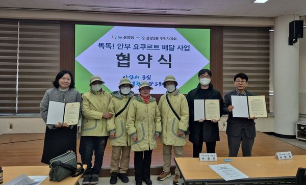 [Ytv영상스토리] 아산시 온양3동 주민자치회는 13일 hy 온양점과 '똑똑, 요구르트 배달사업'추진을 위한 업무협약을 체결했다.