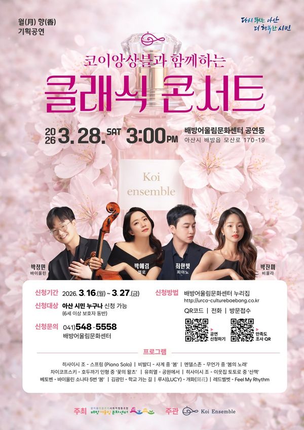 아산시 배방어울림문화센터, 코이앙상블과 함께하는 클래식 콘서트 개최 (아산시 제공)