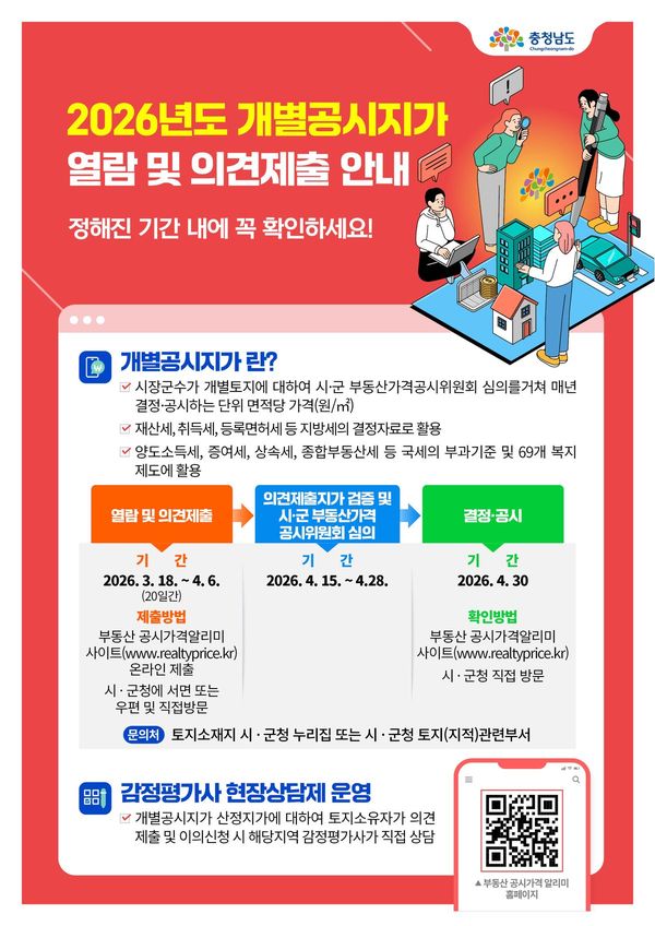 1월 1일 기준 개별공시지가 열람 시작 (충청남도 제공)