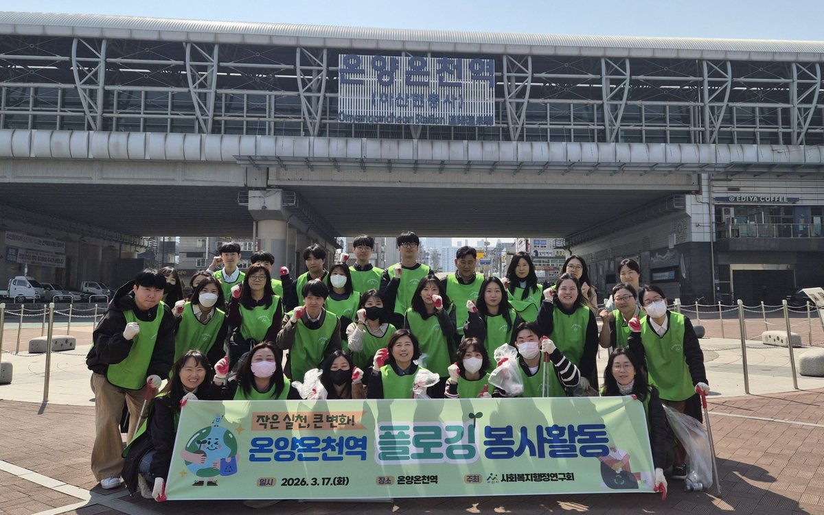 [Ytv영상스토리] 아산시사회복지행정연구회는 따뜻한 봄을 맞아 지난 17일 온양온천역 일대에서 환경 보호와 건강 증진을 위한 플로깅 봉사활동을 실시했다.