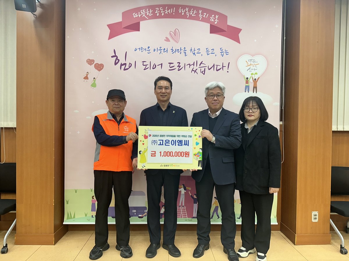 [Ytv영상스토리] 고은이엠씨는 지난 18일 음봉면 행복키움추진단에 지역 내 취약계층을 위한 후원금 100만원을 전달했다.