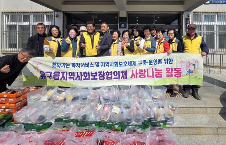 이날 유구읍 지역사회보장협의체는 상반기 정기총회를 열어 올해 추진할 특화사업과 운영 방안을 논의한 뒤 나눔 활동을 이어갔다.