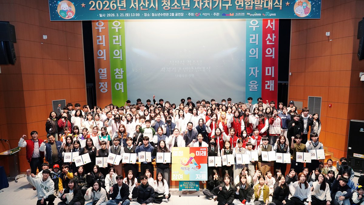 [Ytv영상스토리] 서산시 청소년수련시설은 지난 21일 서산문화복지센터 공연장에서 '2026년 서산시 청소년 자치기구 연합 발대식'을 개최했다.