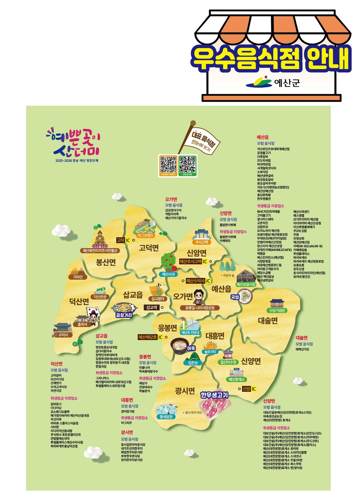 [Ytv영상스토리] 예산군은 예산을 방문하는 관광객과 군민이 안심하고 음식점을 이용할 수 있도록 주요 관광지에 우수음식점 안내판을 설치했다고 밝혔다.