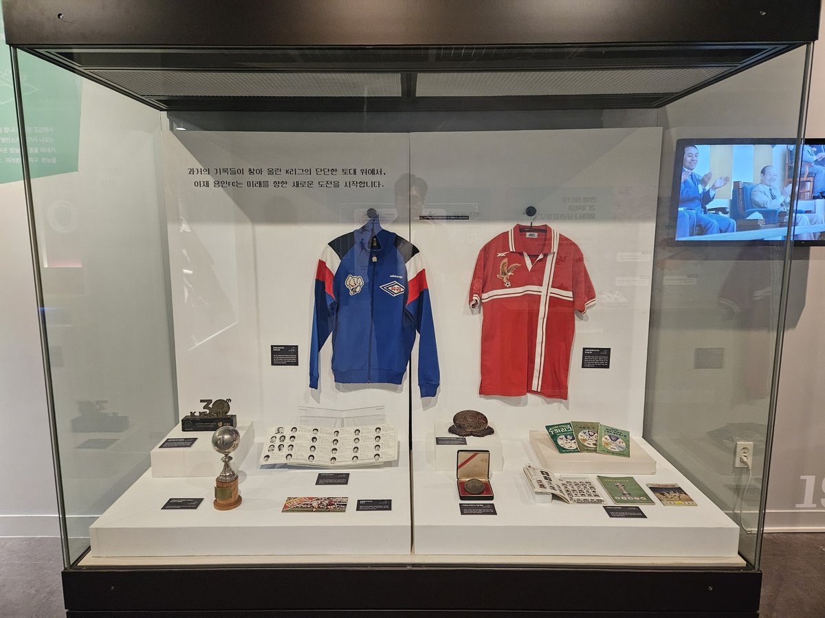 천안 축구역사박물관 소장 자료가 용인시박물관 기획전에 전시되어 있다.