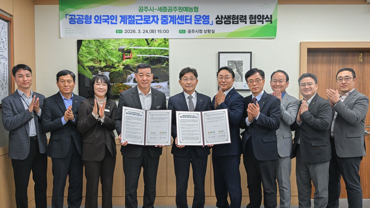 최원철 시장은 “이번 협약은 인력난으로 어려움을 겪는 중소농가에 실질적인 도움이 될 것”이라며 “올해 표준모형을 성공적으로 정착시켜 공주시 전 지역 농업인이 일손 걱정 없이 영농에 전념할 수 있는 환경을 조성하겠다”고 밝혔다.