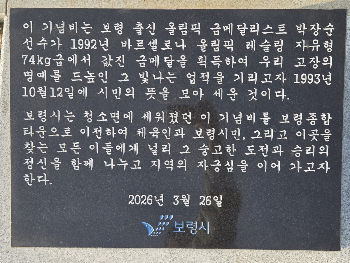 [Ytv영상스토리] 보령시는 보령 출신 올림픽 금메달리스트 박장순 감독의 빛나는 업적을 기리고 시민의 자긍심을 고취하기 위해 추진한 ‘박장순 기념비 이전 사업’을 마무리하고 26일 박장순 기념비 이전 제막식을 개최했다.