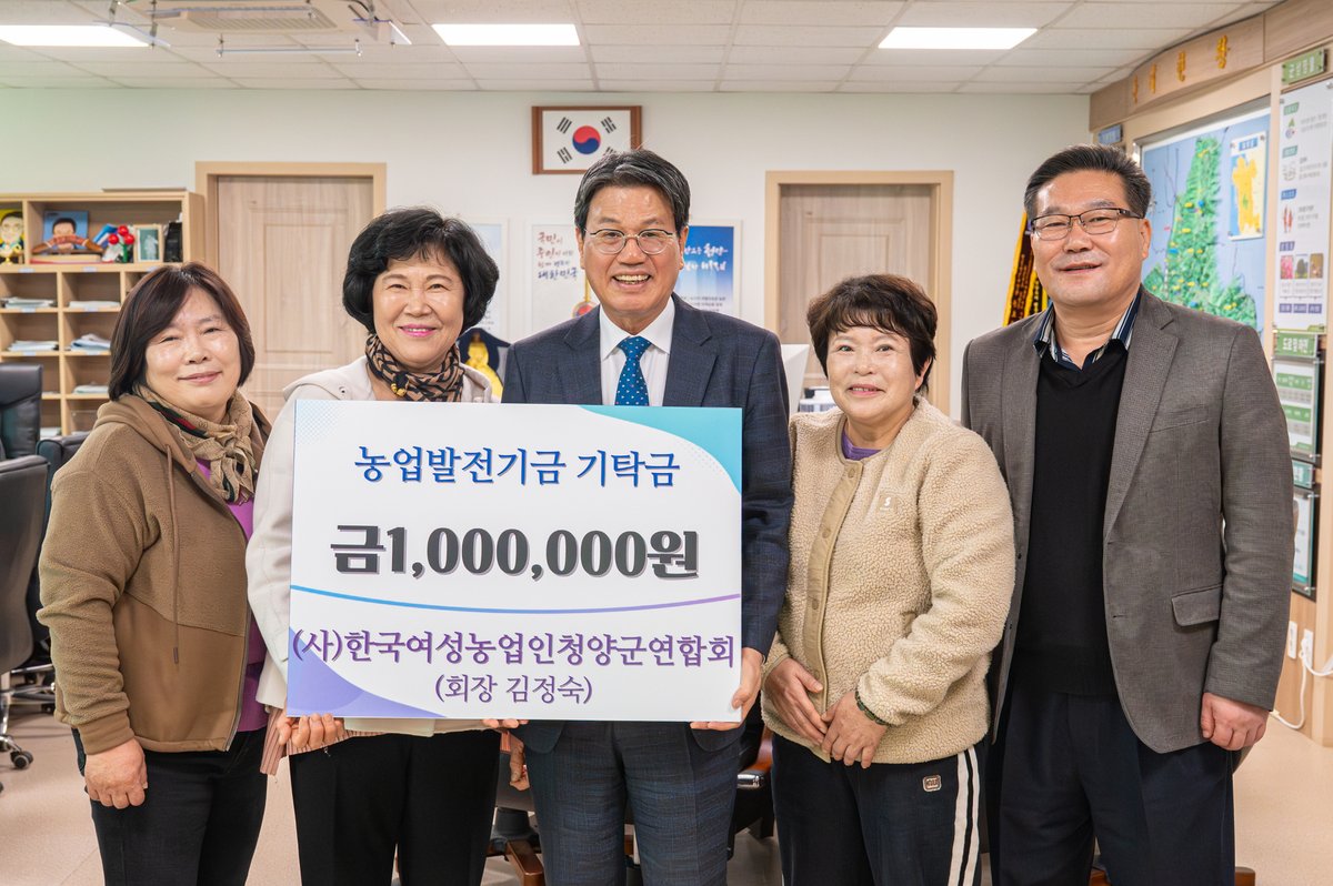 [Ytv영상스토리] 한국여성농업인청양군연합회가 지역 농업 발전과 지속 가능한 농촌 사회 조성을 위해 지난 25일 청양군을 방문해 농업발전기금 100만원을 기탁했다.