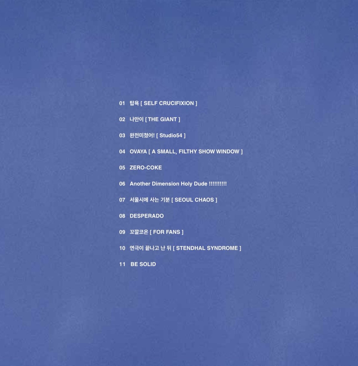 첫 번째 트랙 '탑욕'부터 '나만이', '서울시에 사는 기분'등 탑 특유의 개성이 묻어나는 제목들은 이번 앨범이 담고 있는 새로운 음악적 시도를 예고한다.