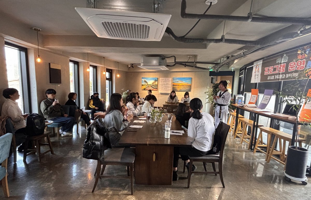 참여자들은 카페에서 제공된 차와 쿠키 후원)를 함께 나누며 왕도심 국악문화향유거점활성화사업 기획 운영)의 일환인 ‘취향 커뮤니티에 국악 한스푼 떠넣는’ 프로그램을 통해 국악 문화를 체험했다.