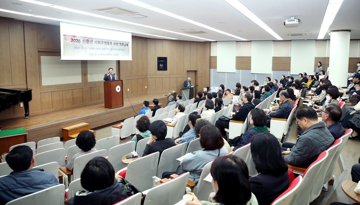 구는 대전과학기술대학교 동방관에서 ‘2026년 신중년 사회공헌활동 지원사업’ 참여자 100여명을 대상으로 사전 직무 교육을 실시했으며 이들이 이후 본격적인 사회공헌활동에 나선다고 27일 밝혔다.