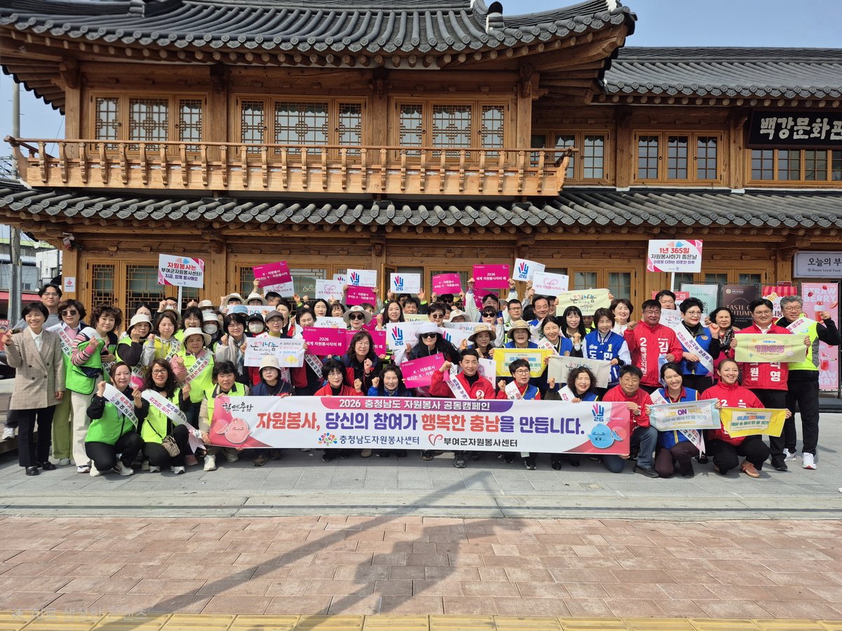 [Ytv영상스토리] 부여군자원봉사센터는 부여읍 중앙로 일원에서 자원봉사 인식 확산과 나눔 문화 정착을 위한 ‘2026 부여군 자원봉사 공동캠페인’의 시작을 31일 알렸다.