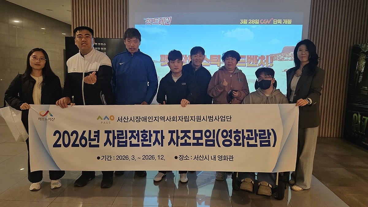 [Ytv영상스토리] 서산시는 장애인이 지역에서 자립할 수 있도록 주거지원과 일상생활 지원 등을 포함한 '장애인지역사회자립지원시범사업'을 추진하고 있으며 장애인지역사회자립지원시범사업단은 3월 28일 서산시 CGV에서 자립전환자 대상으로 1분기 자조모임을 개최했다.