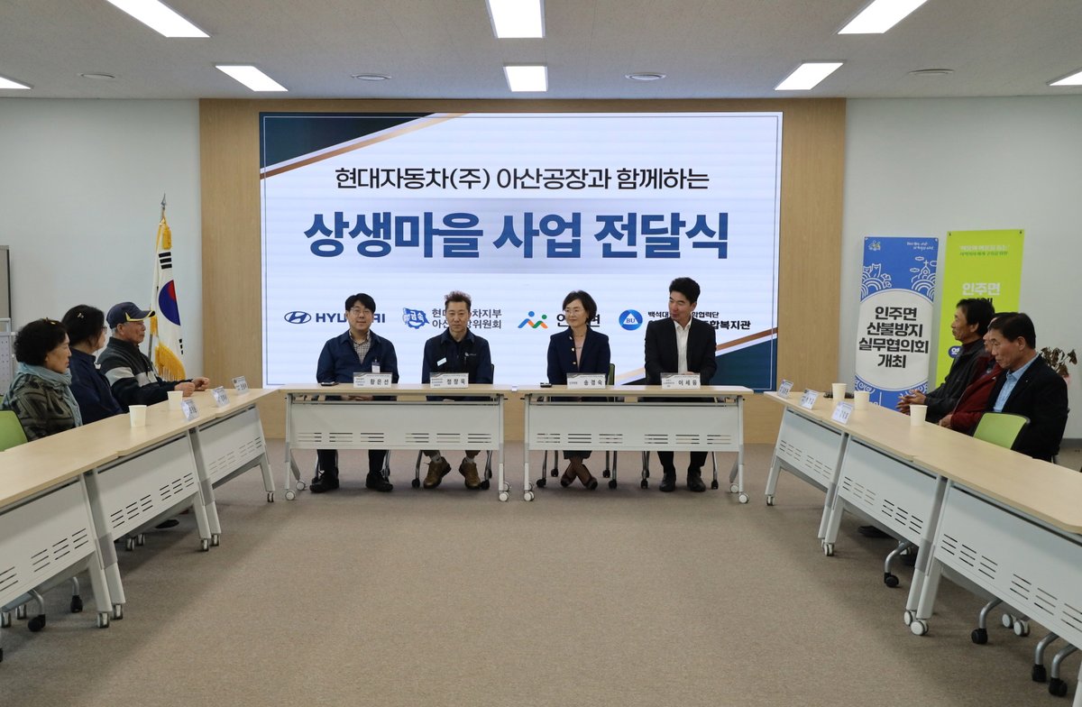 상생마을사업은 현대자동차(주) 아산공장의 사회공헌 활동 일환으로 인주면 내 마을회관과 경로당의 이용환경 개선 및 지역사회 협력 강화를 위해 추진됐다.