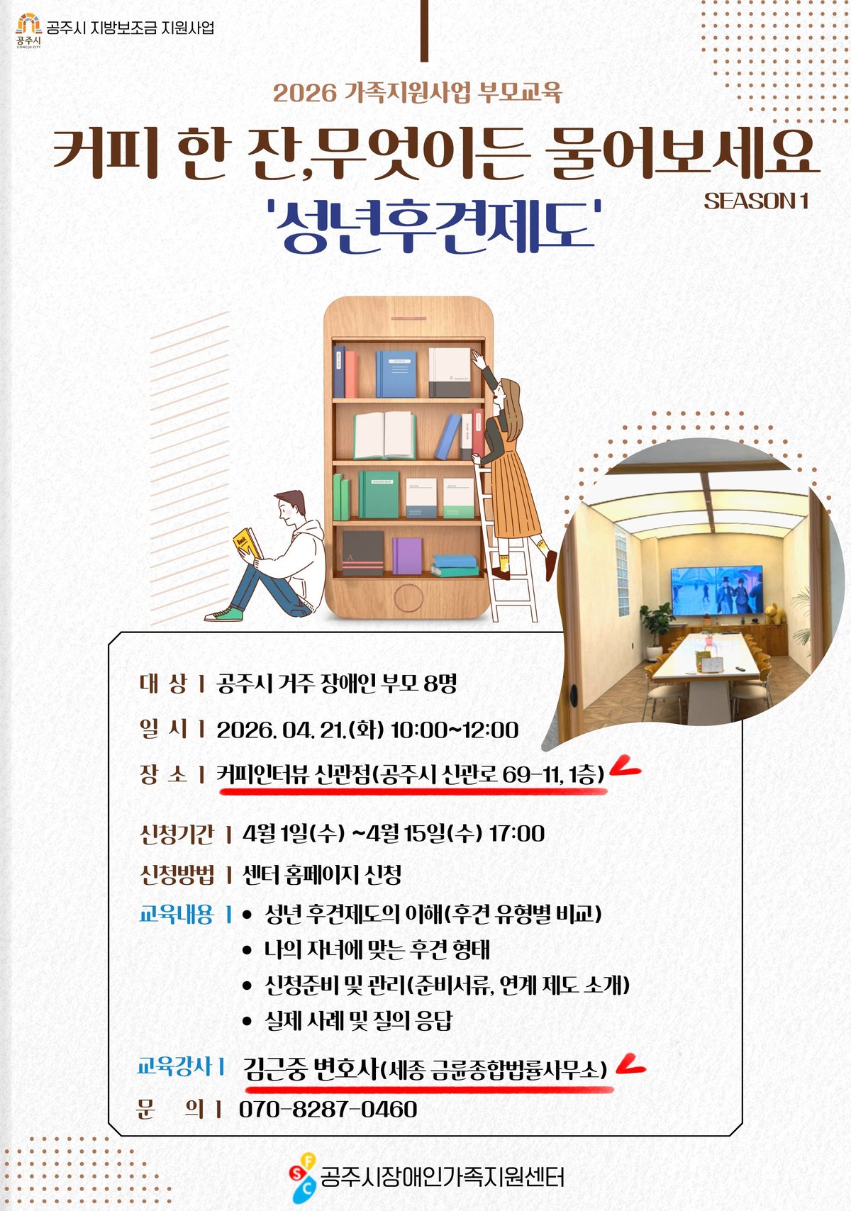 기타 자세한 사항은 공주시장애인가족지원센터로 문의하면 된다.