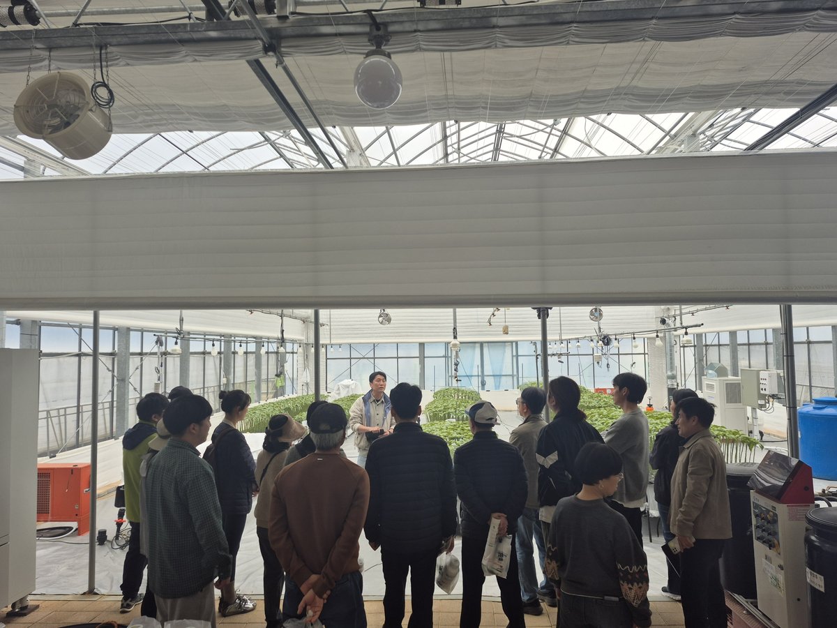 이날 교육은 잎들깨 스마트팜 기술이 적용된 재배시설을 직접 확인하는 시간을 제공하고 도입과 운영재배 기술에 관한 내용도 전달했다.