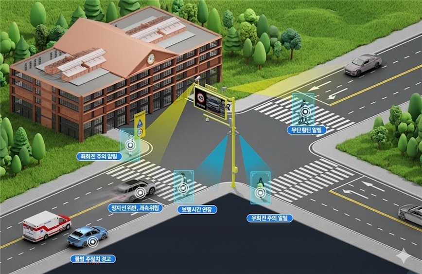 해당 시스템은 어린이보호구역 내 보행자, 차량, 전동킥보드 등을 AI로 실시간 영상 분석해 사고 위험을 예측하고 보행자와 차량에 사전 경고를 제공하는 시스템으로 보호구역 내 교통사고 예방에 효과가 클 것으로 기대된다.