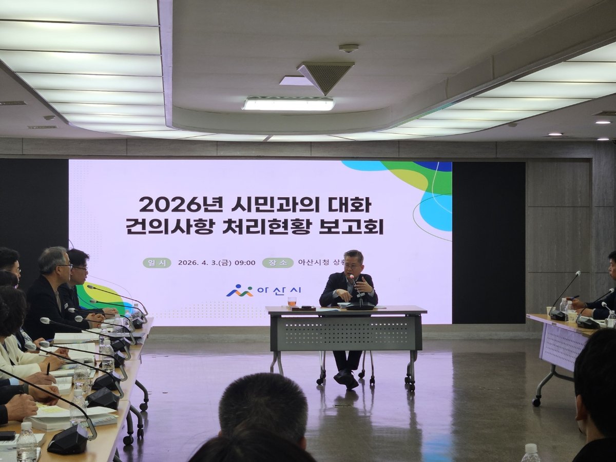 [Ytv영상스토리] 아산시는 지난 3일 부시장 주재로 국 소장, 관련 부서장, 그리고 17개 읍 면 동장이 참석한 가운데 ‘2026년도 시민과의 대화 건의사항 추진상황 보고회’를 가졌다고 밝혔다.
