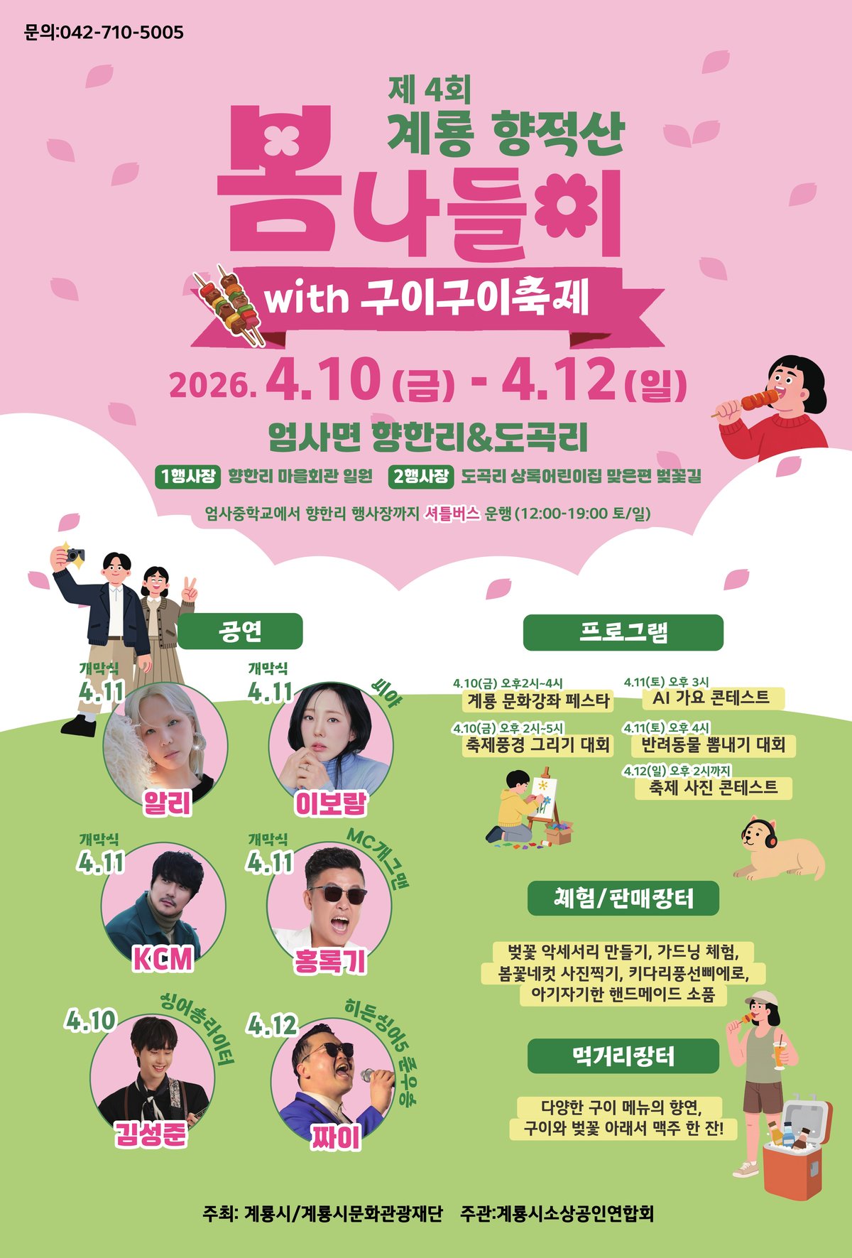 한편 이번 ‘제4회 계룡 향적산 봄나들이’행사는 계룡시 소상공인연합회가 주관하는 민간 주도 행사로 엄사면 향한리 마을회관 일원과 도곡1리 어린이 감성체험장 일원에서 4월 10일부터 3일간 진행된다.